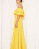 Макси платье с низким плечом, двойными оборками и воротом Кармен для вечеринки и выпускного — желтое, размер 34-54