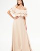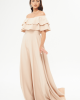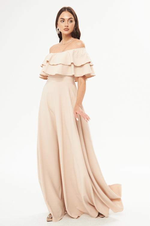 Макси платье с рюшами и кармен вырезом, низкие плечи, цвет: крем, для выпускного и торжеств, разные размеры от XS до 7XL