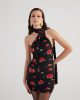 Мини-платье Хелена черного цвета с вырезом на спине и рисунком роз, детали с шалью, состав: 92% полиэстер, 8% эластан