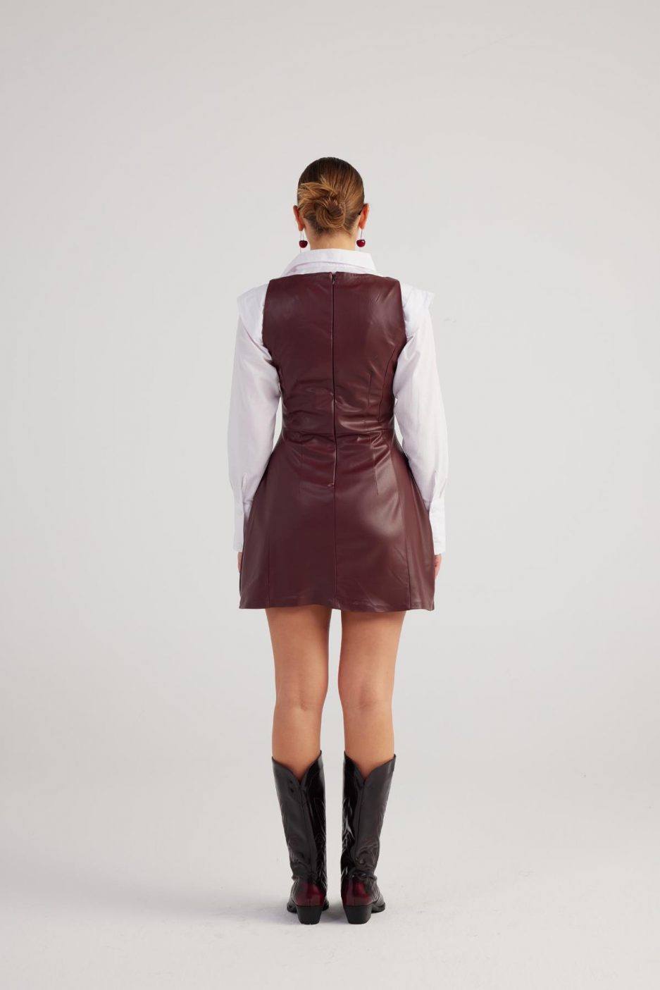 Мини-платье Larissa бордового цвета, элегантный квадратный вырез, подкладка и застежка на молнии, выполнено из веганской кожи