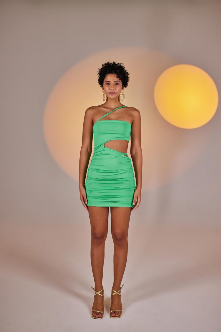 Мини-платье с драпировкой, глубоким вырезом и перекрестными бретелями, цвет зелёный, размер XS