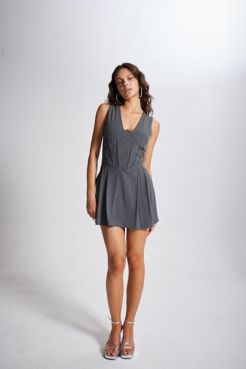 Мини-платье с корсетным поясом, размер XS, серый цвет