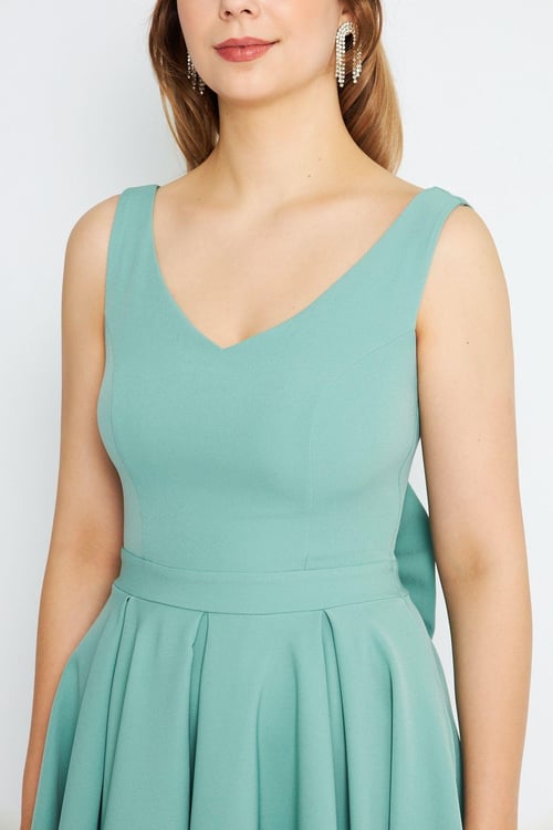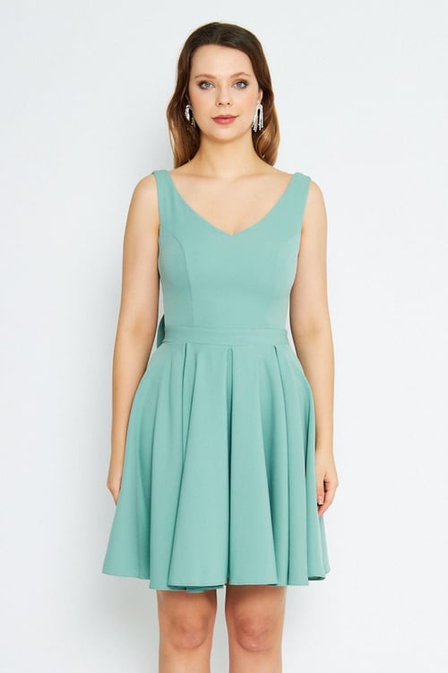 Мини-платье с воланом на спине и пуговками, V-образный вырез, мятный цвет, плиссированное, размеры XS-7XL