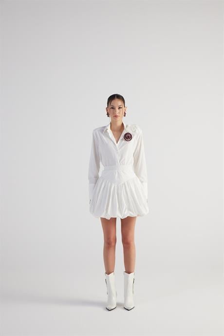 Мини-юбка Markano Lexi белая с эластичным поясом и корсетными деталями из поплина для комфорта и стиля