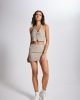 Мини-юбка с замком, полосатая, бежевого цвета, размер XS