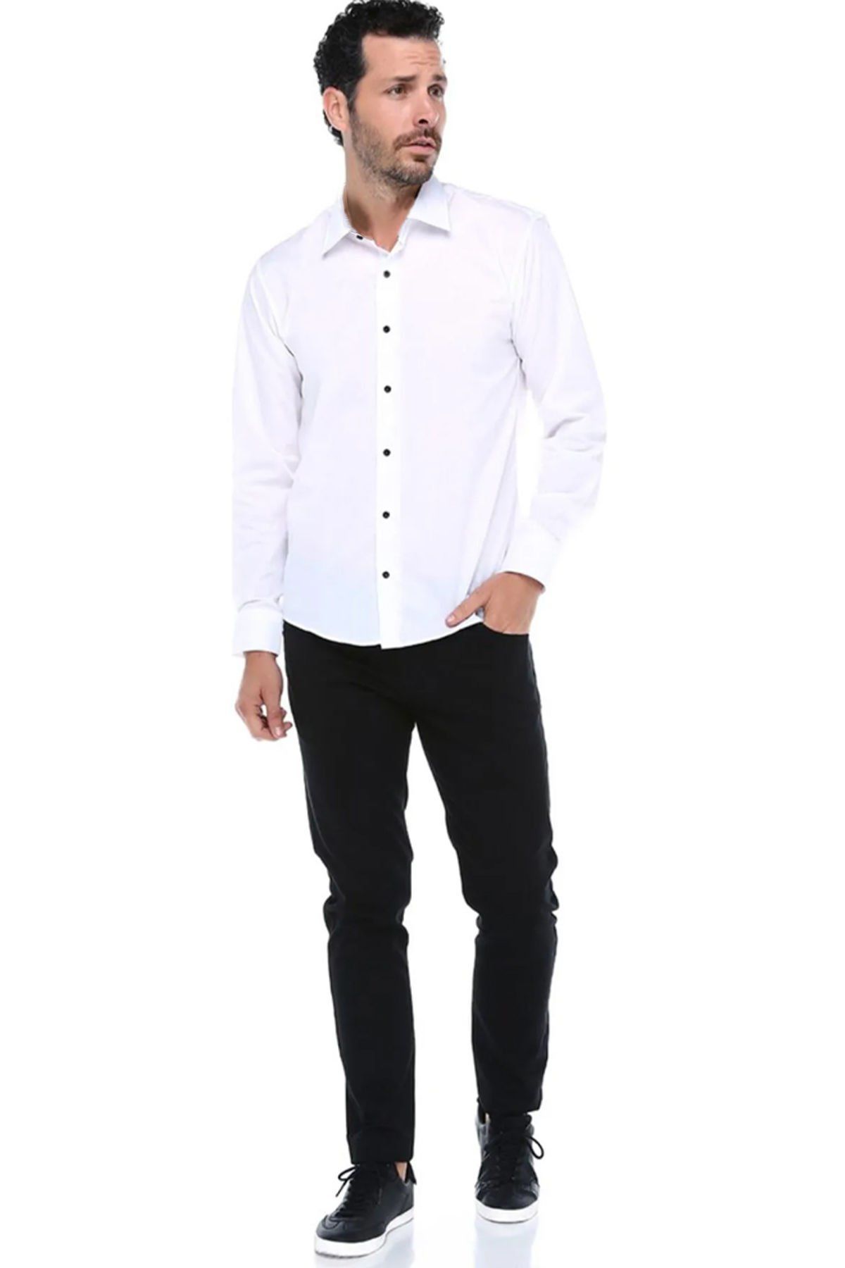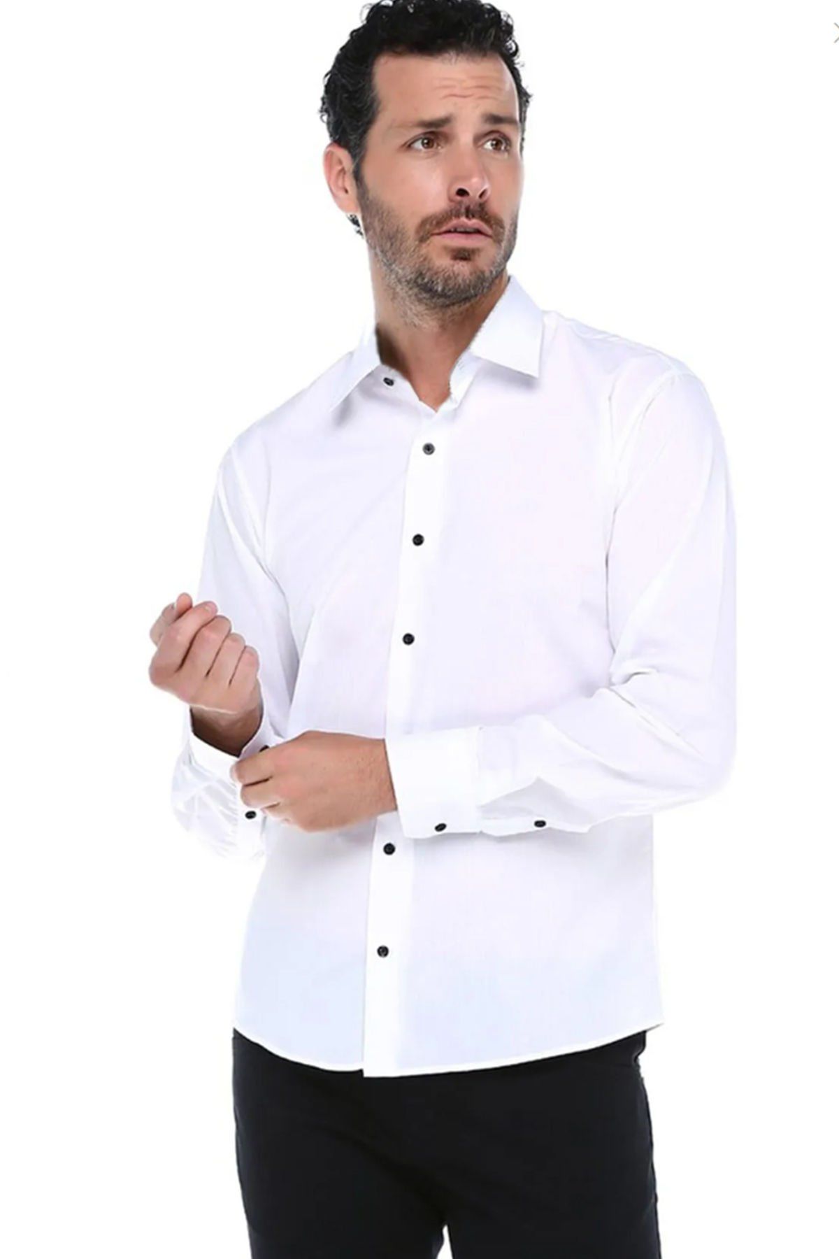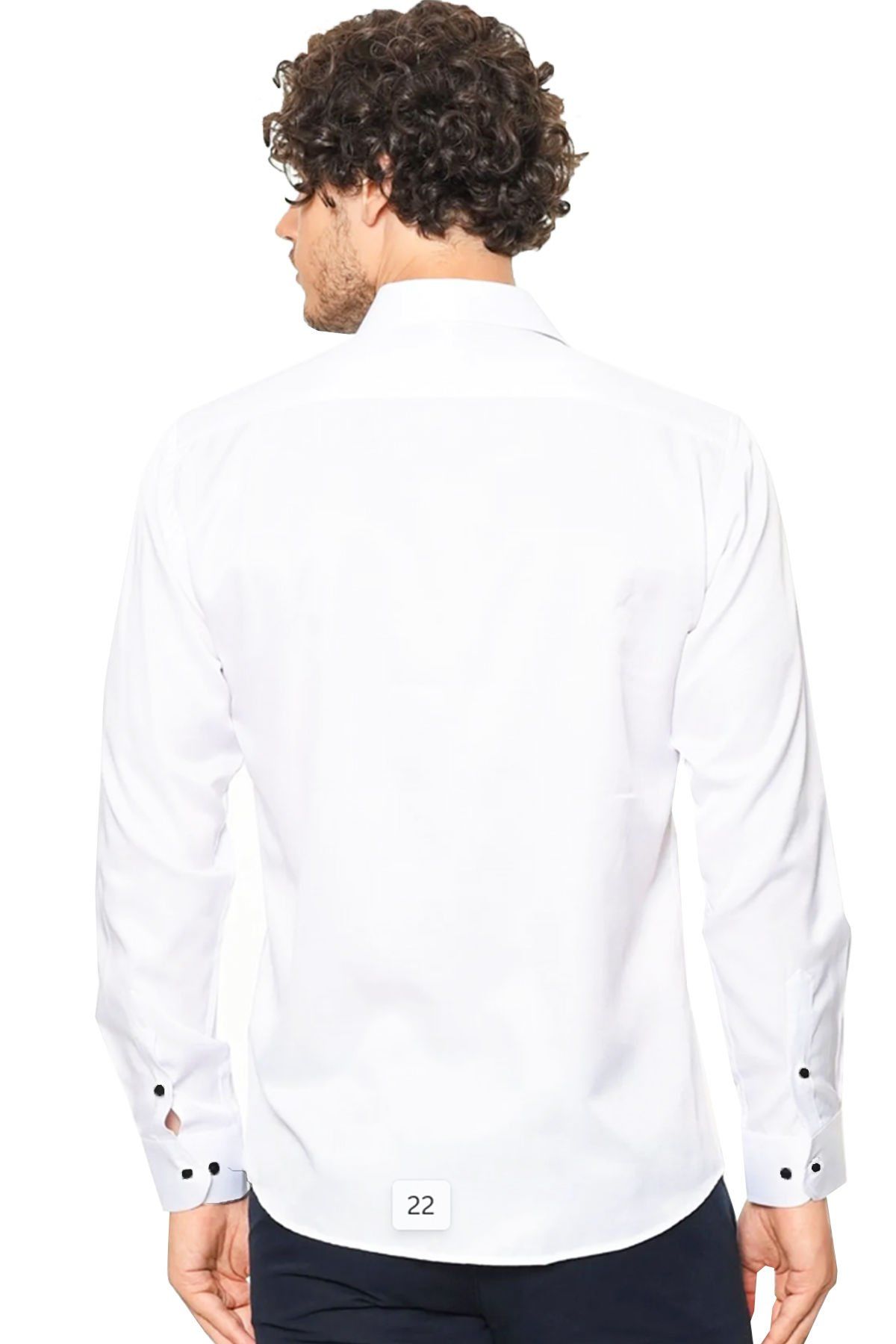 Мужская белая классическая рубашка свободного кроя без карманов длинным рукавом, комфортная и стильная. Производство Турция