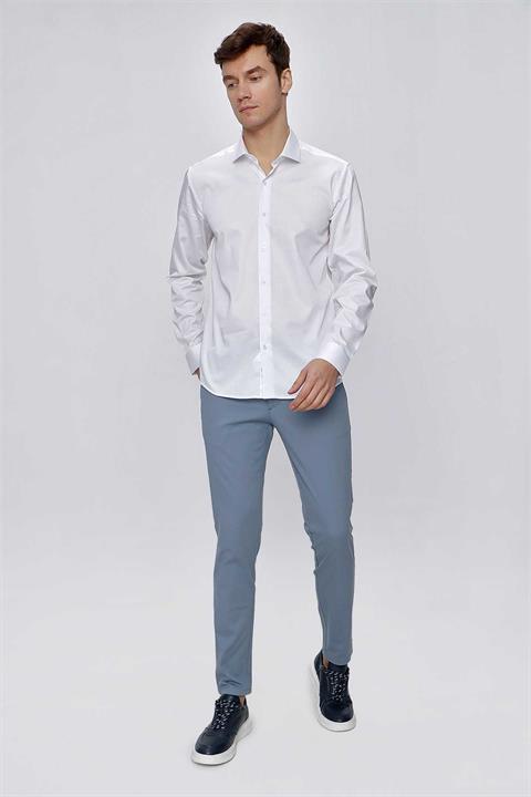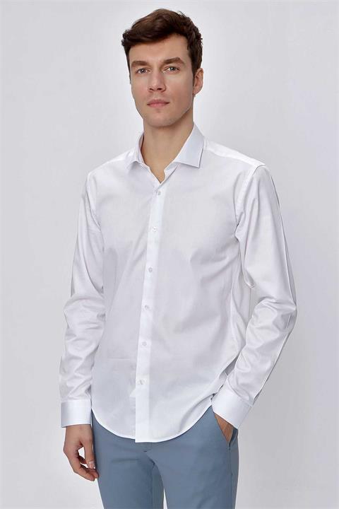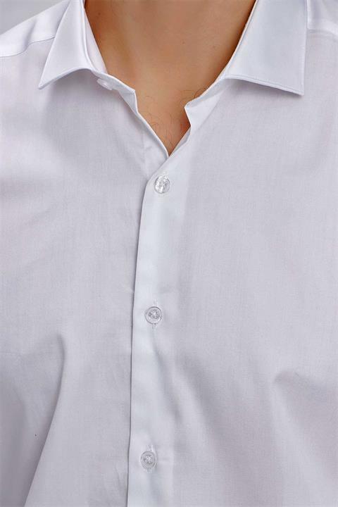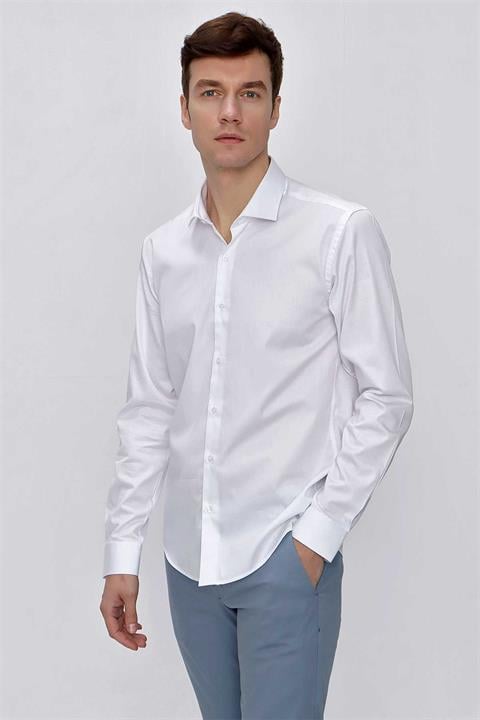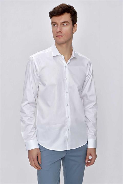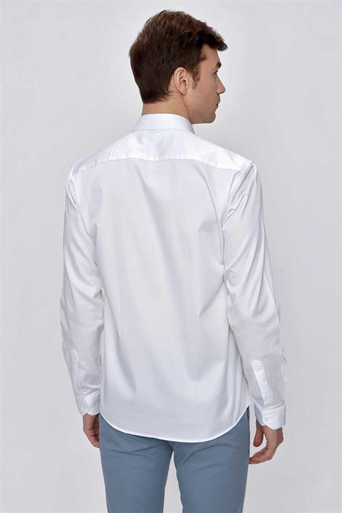 Мужская белая сорочка «Slim Fit» из 100% хлопка, без карманов, с длинными рукавами и пуговицами