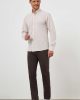 Мужская бежевая льняная рубашка на пуговицах, Slim Fit, 70% хлопок, 30% лен, без карманов, длинный рукав