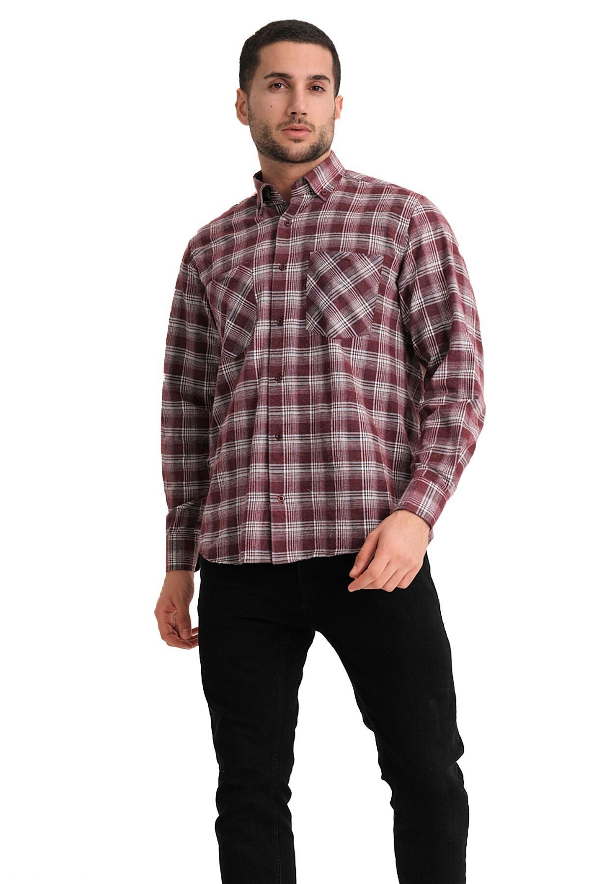 Мужская бордовая зимняя рубашка Varetta с двумя карманами из высококачественной шерсти