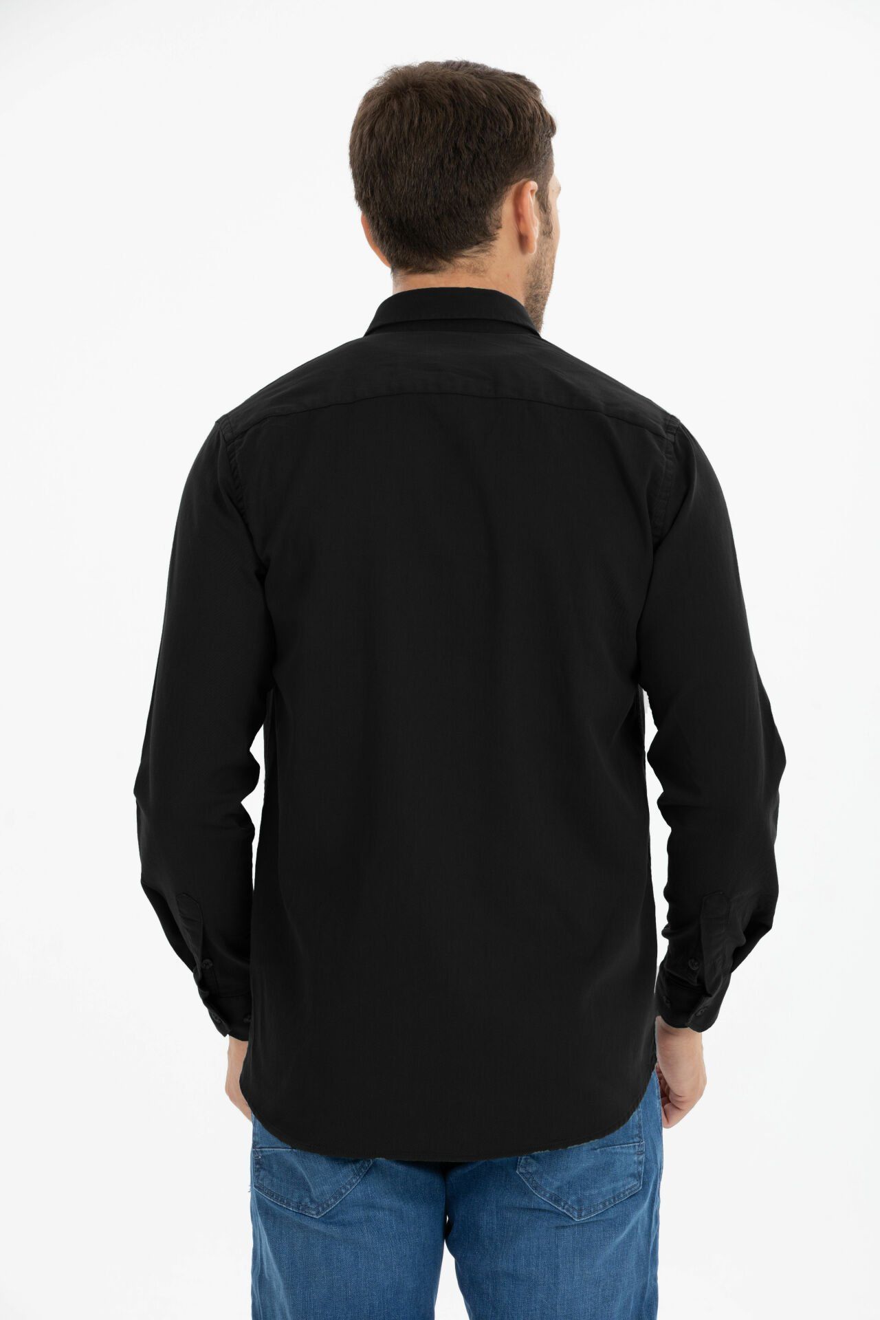 Мужская черная джинсовая рубашка с длинными рукавами и двумя карманами, классический свободный крой, 100% хлопок