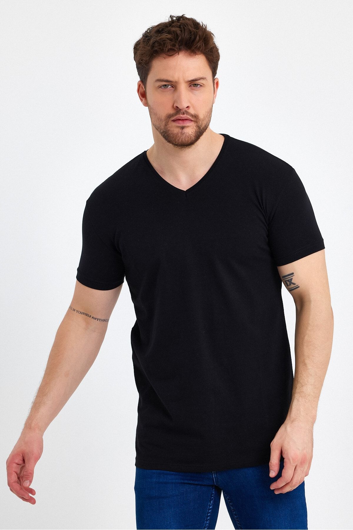 Мужская черная футболка стандартного кроя %100 хлопок 2 штуки без карманов