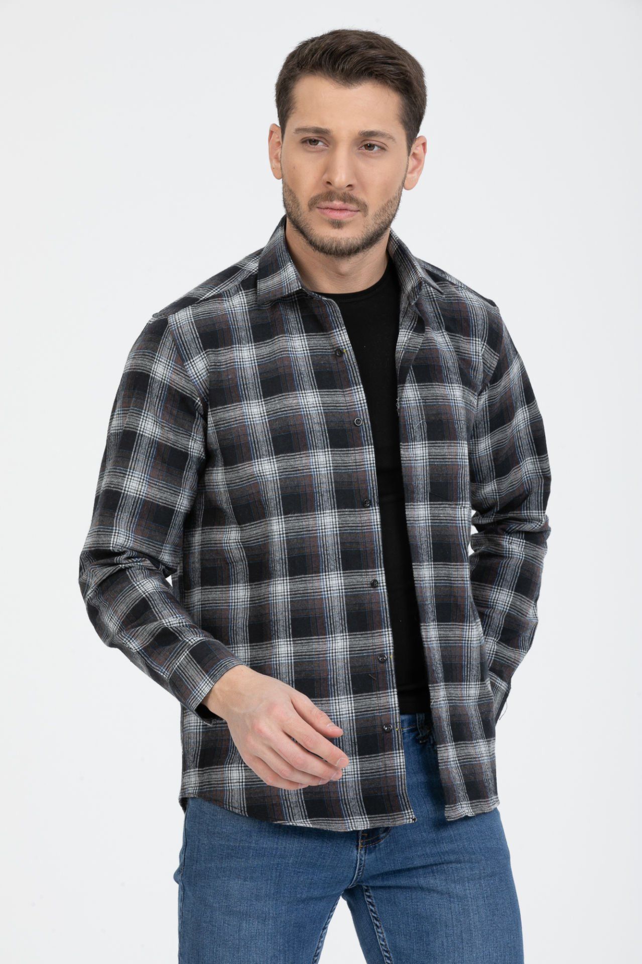 Мужская черная клетчатая зимняя рубашка Varetta с классическим свободным кроем и длительными рукавами