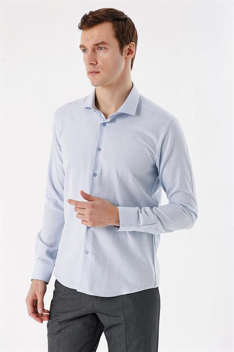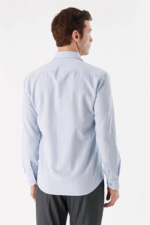 Мужская голубая мини-оксфордская рубашка Slim Fit из 100% хлопка без карманов с длинным рукавом и пуговичной застежкой