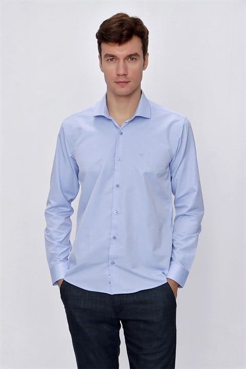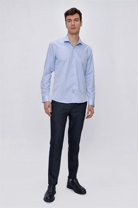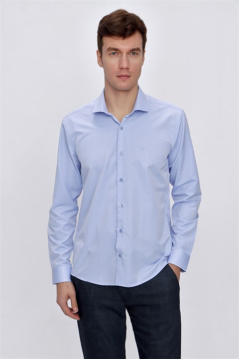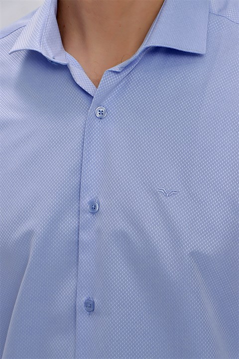 Мужская голубая рубашка Morven с жаккардовым узором, узкий крой, 60% хлопок, 40% полиэстер, без карманов, с длинным рукавом