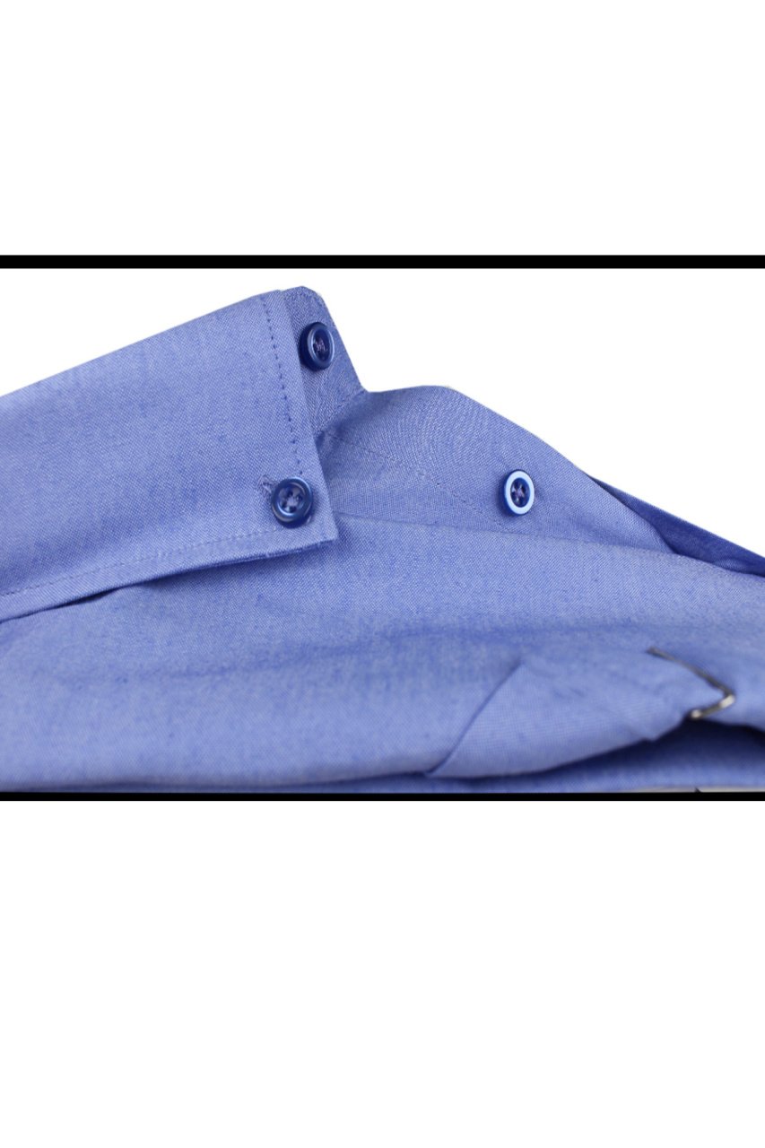Мужская классическая короткая рубашка с пуговичным воротником из сатина, темно-синяя, 67% хлопок, 33% полиэстер, дышащий, легкая глажка
