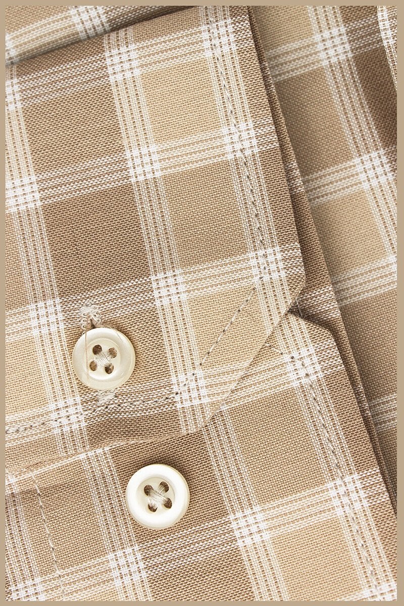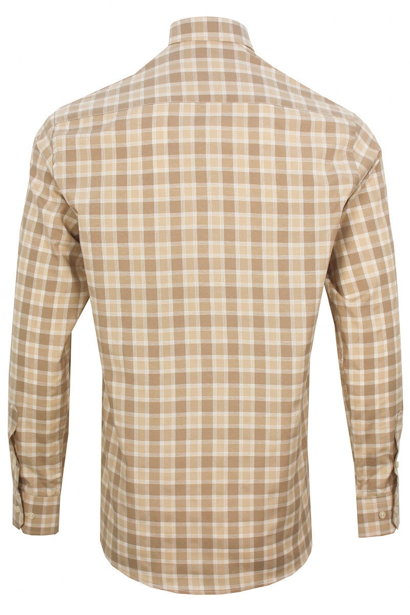 Мужская классическая рубашка с длинным рукавом, однотонная, карман, светло-коричневая, 67% хлопок, 33% полиэстер, широкий размерный ряд