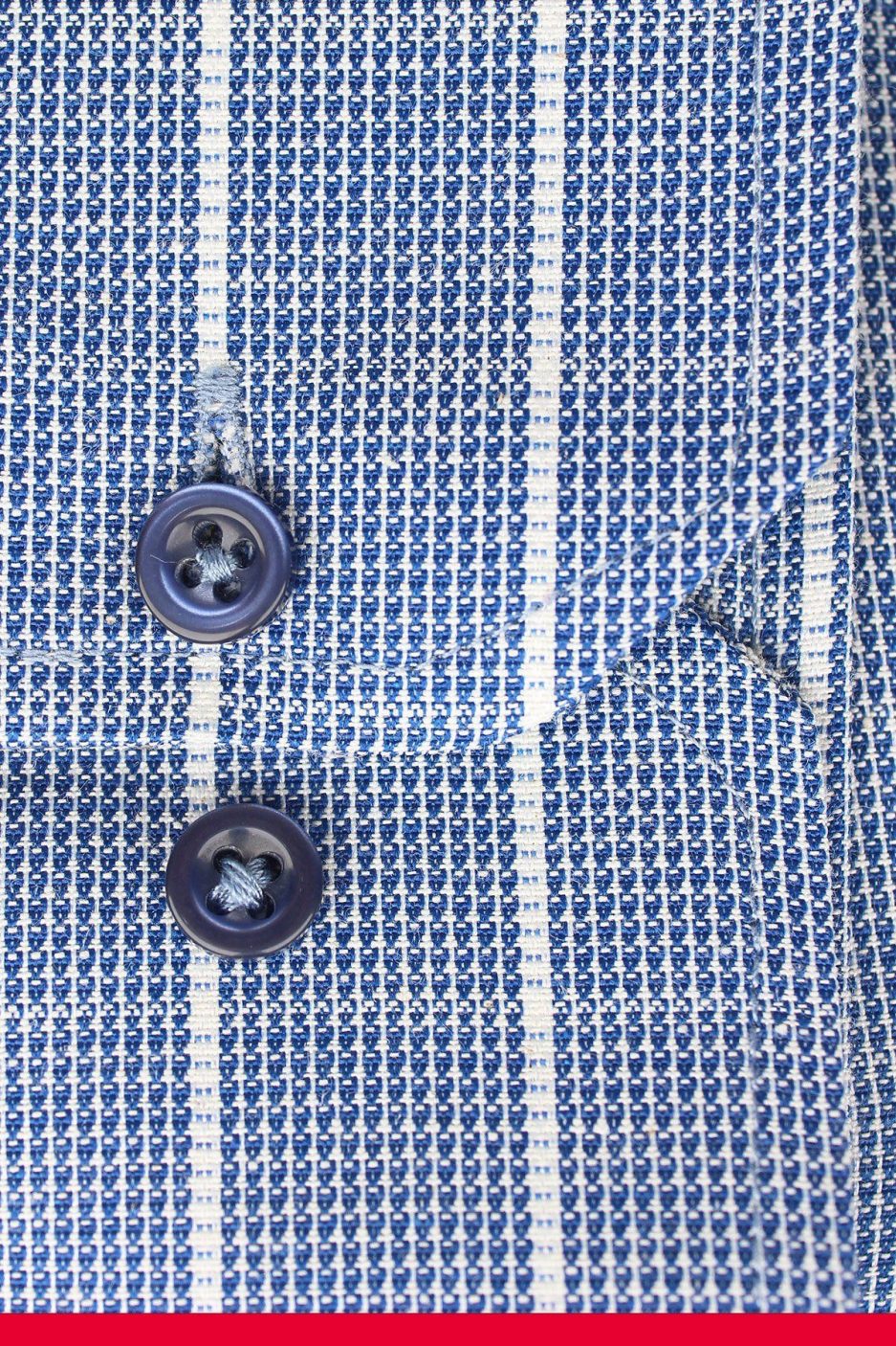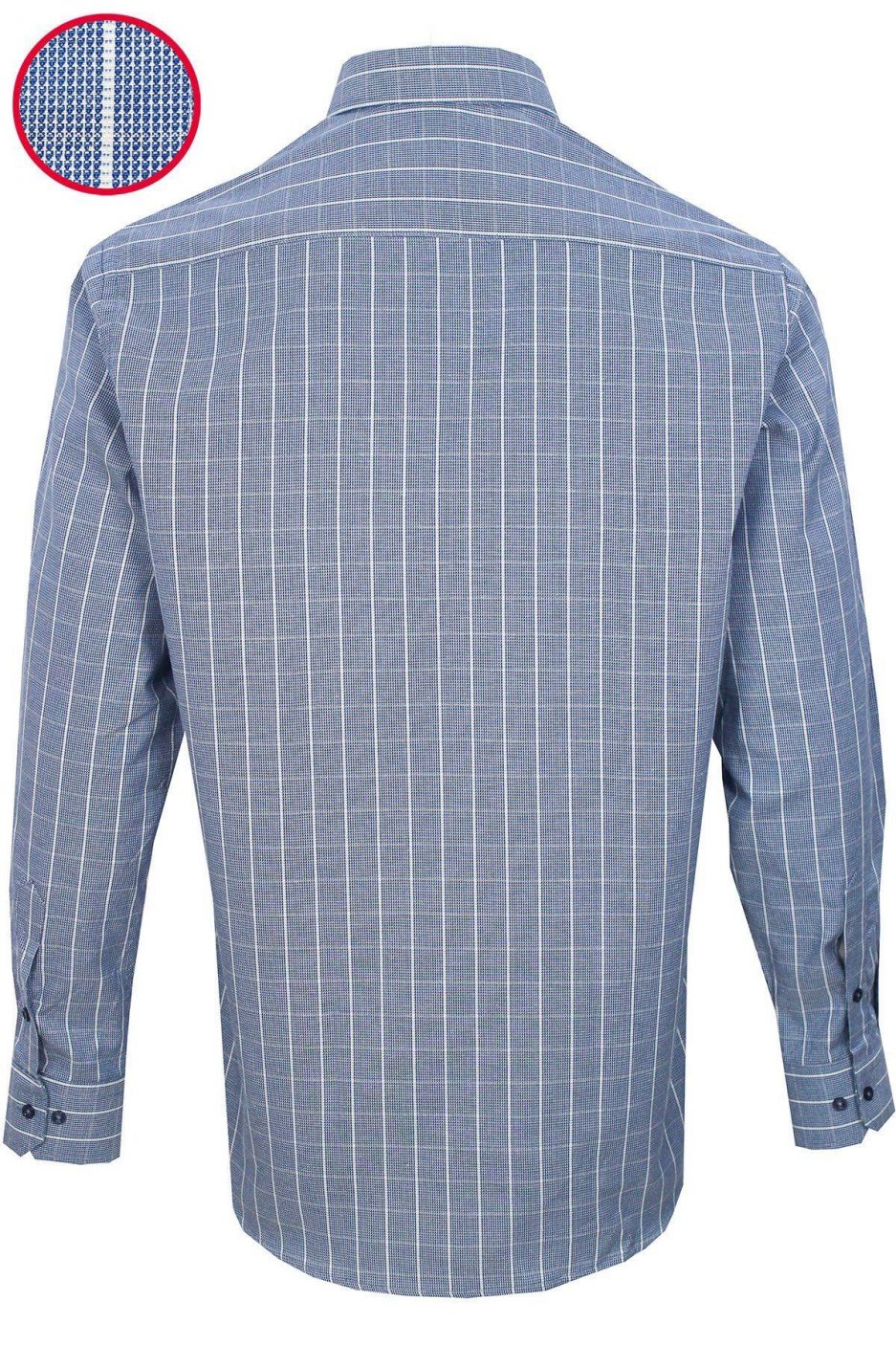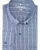 Мужская классическая рубашка с длинными рукавами, синяя в клетку, 67% хлопок, 33% полиэстер, свободный крой, один карман, без пуговиц