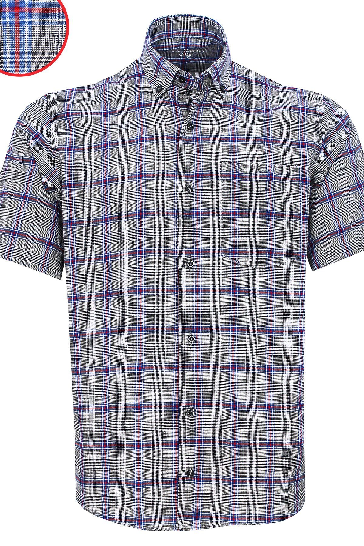Мужская классическая рубашка с коротким рукавом серого цвета, 67% хлопок, 33% полиэстер, с воротником на пуговицах и одним карманом
