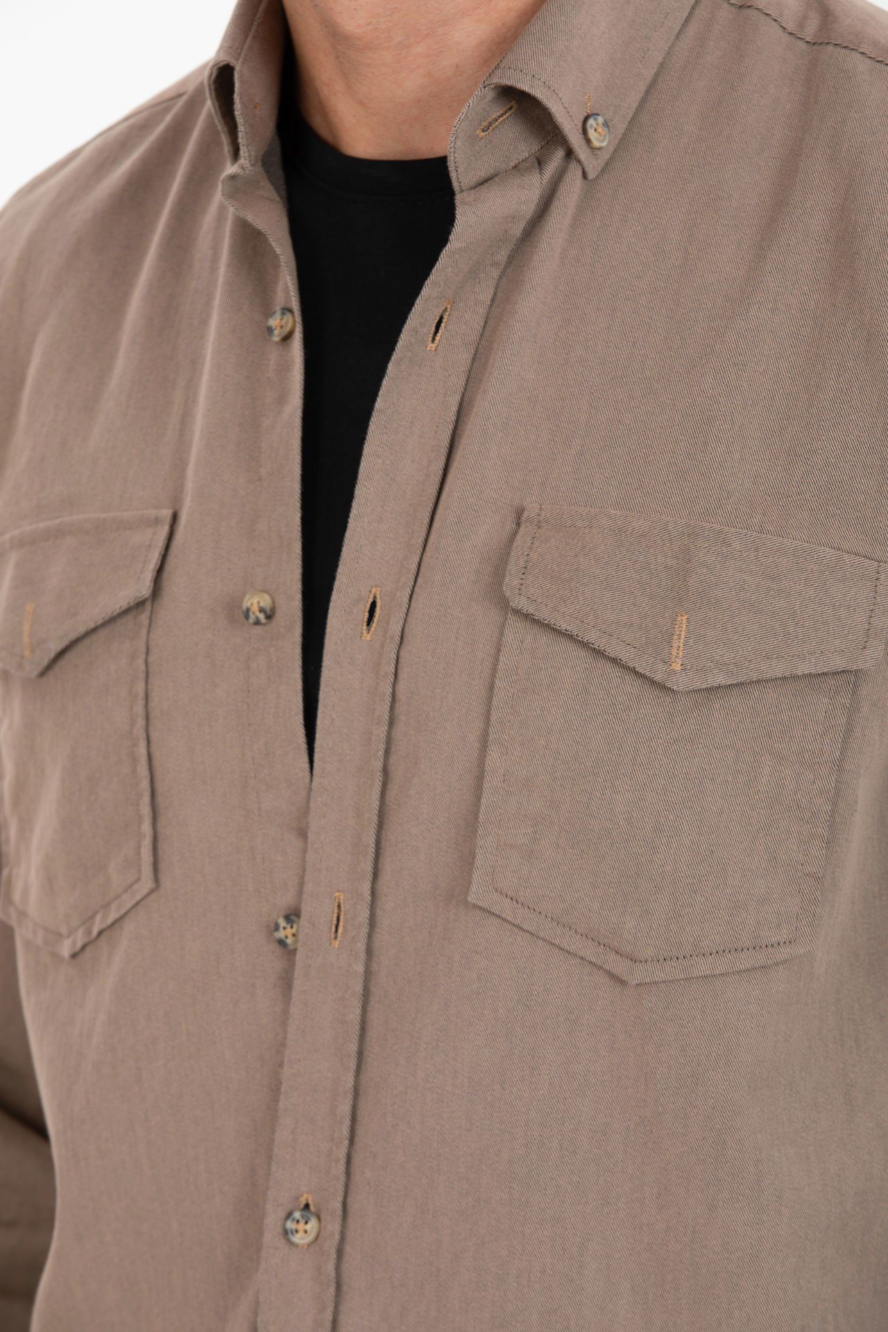 Мужская коричневая рубашка с длинным рукавом из легкого денима, классический крой, двойные карманы, 100% хлопок, стильный и удобный.