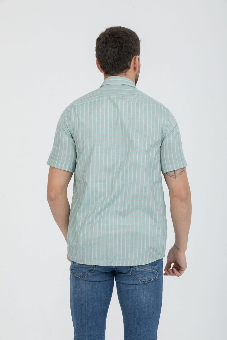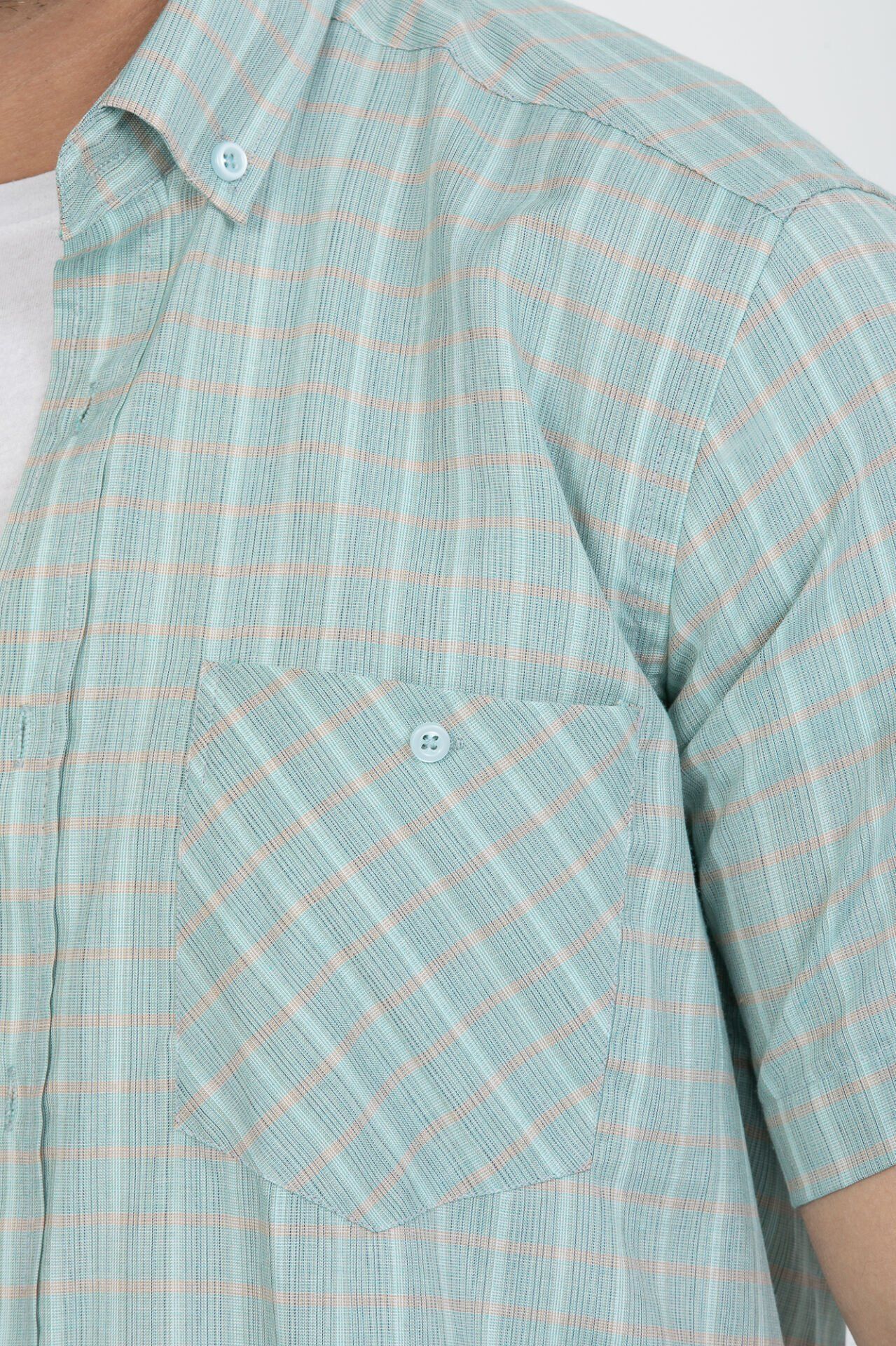 Мужская короткос Sleeves рубашка Varetta зелёная в клетку с двумя карманами, свободный крой, летний, размеры S, M, L, XL, производство в Турции