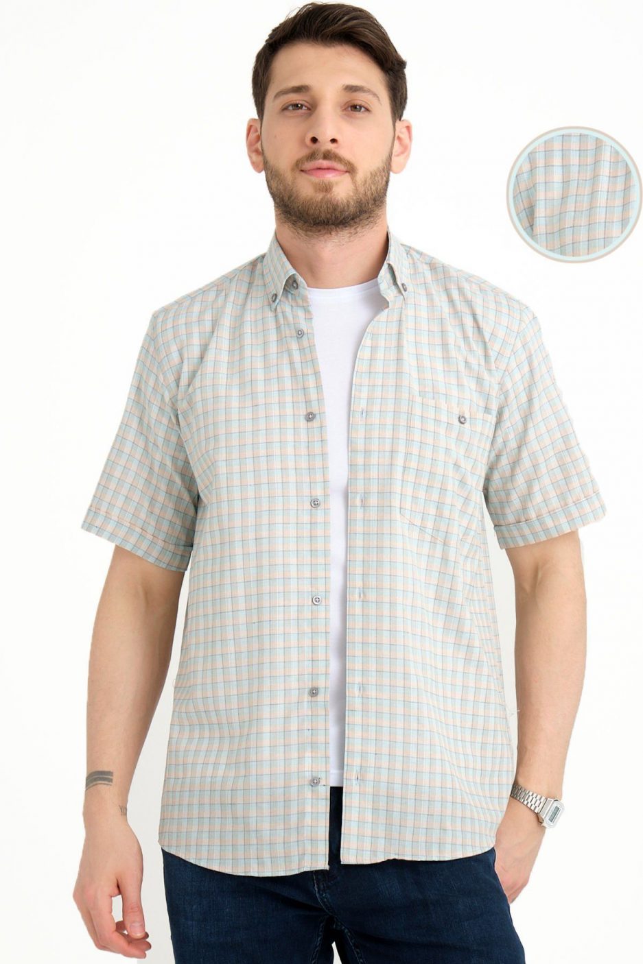 Мужская короткосleeve рубашка Varetta зеленого цвета с карманом, хлопковая, с клетчатым узором, стильная и удобная для жаркой погоды