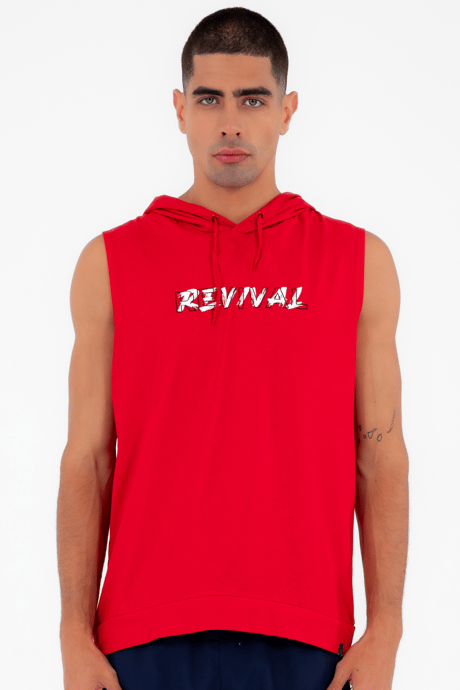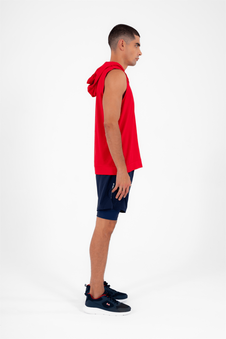 Мужская красная спортивная худи-сетчатая майка slimfit из 100% хлопка для активного отдыха и повседневной носки