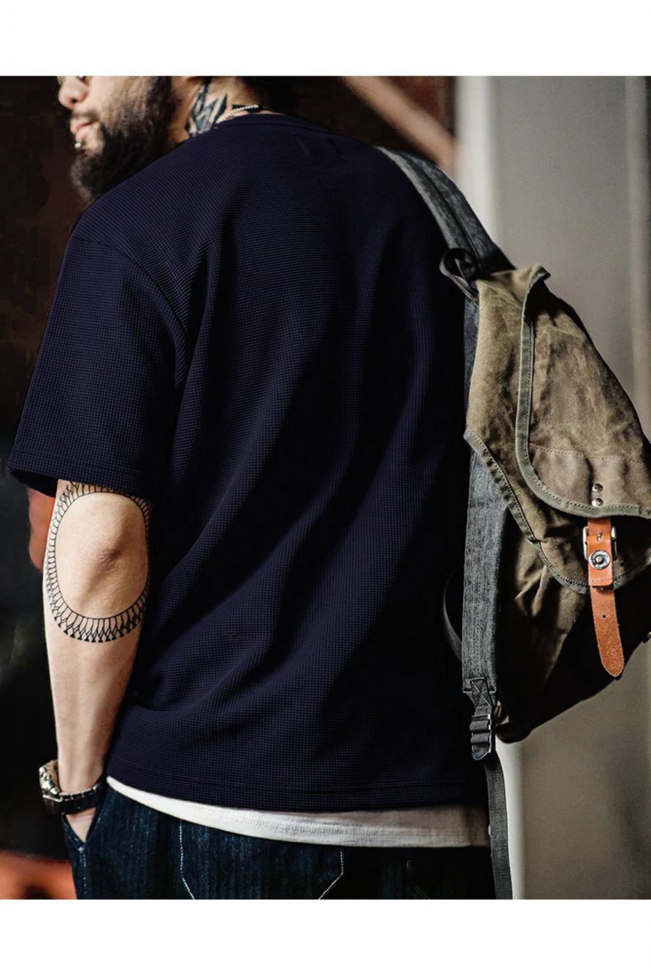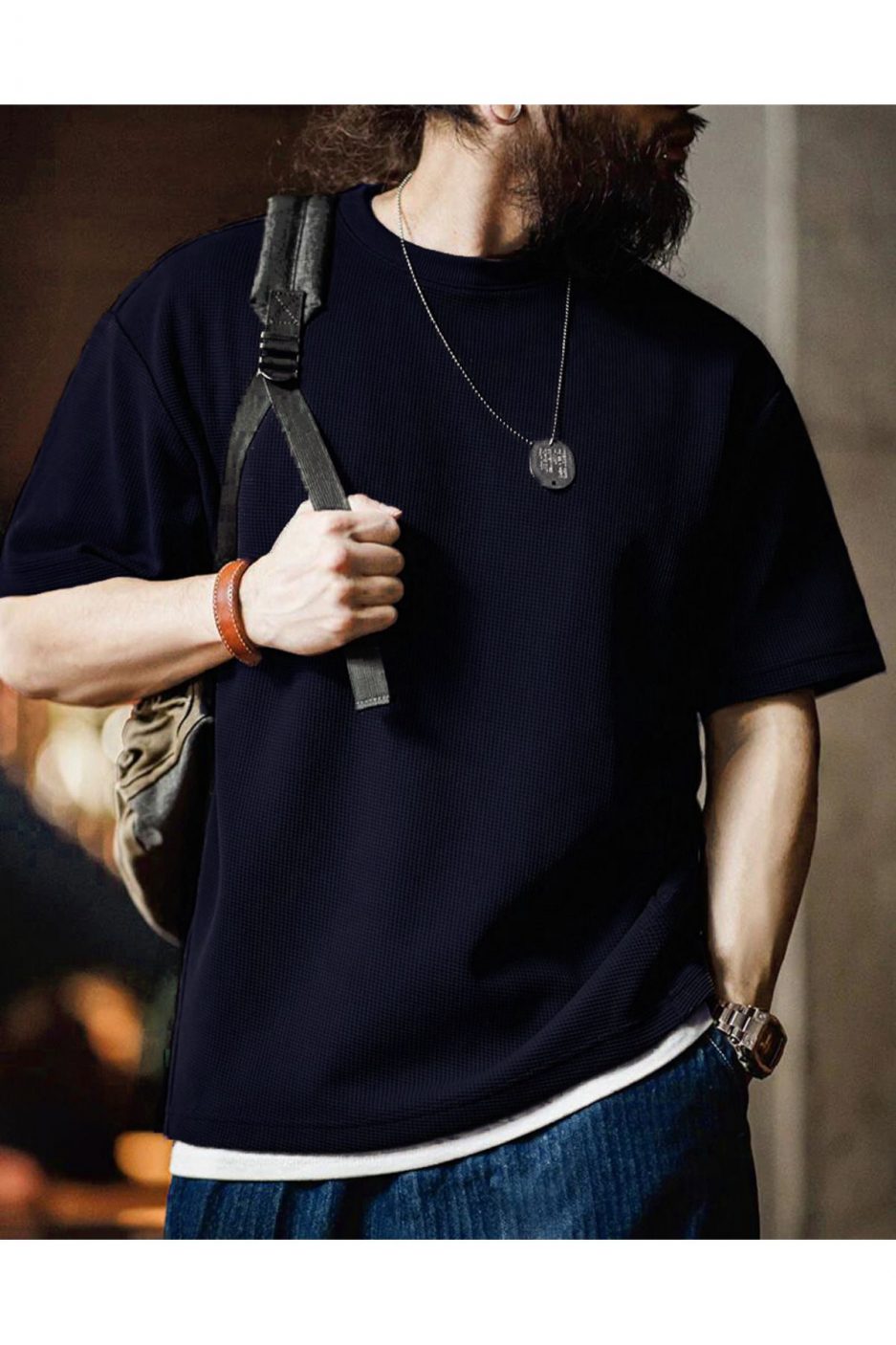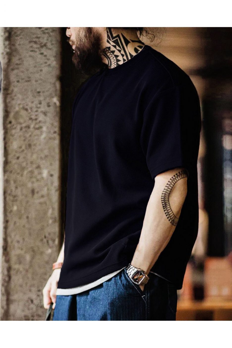 Мужская оверсайз футболка с коротким рукавом и круглым вырезом, 80% хлопок, 20% полиэстер, модель L, цвет: темно-синий