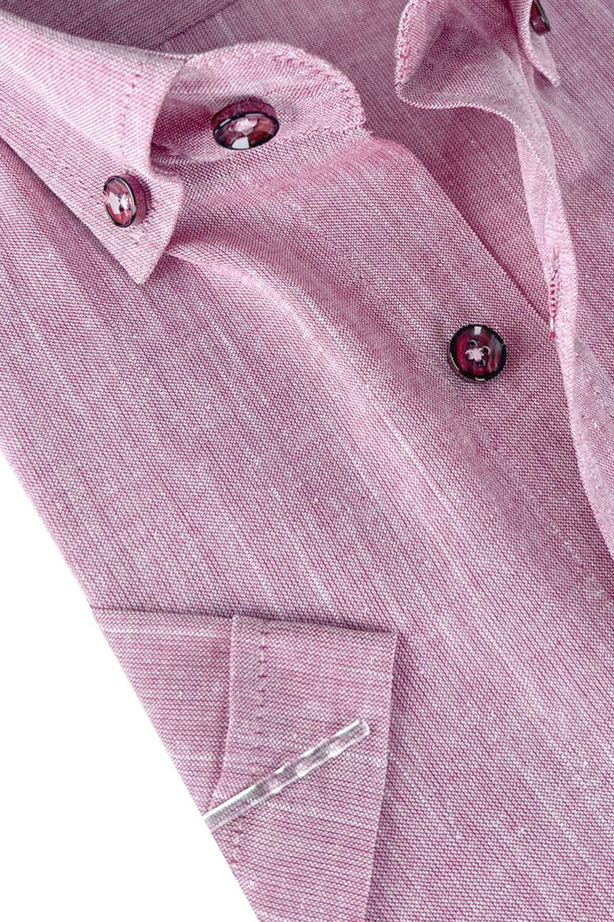 Мужская рубашка короткий рукав розового цвета из смеси хлопка и льна, легкая и стильная, подходит для любого случая