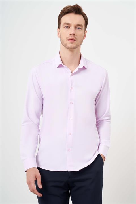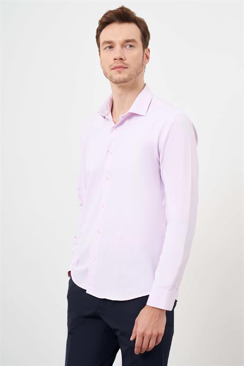 Мужская рубашка Morven с рисунком, приталенная, розовая, 60% хлопок, 40% полиэстер, длинный рукав, итальянский воротник