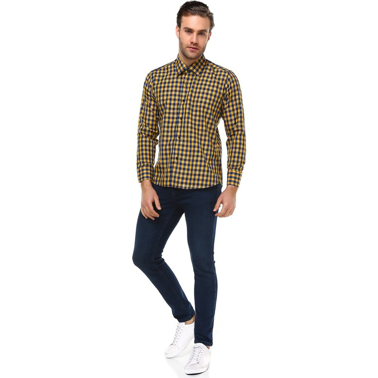 Мужская рубашка с длинным рукавом в узком крое с желто-синим клетчатым узором