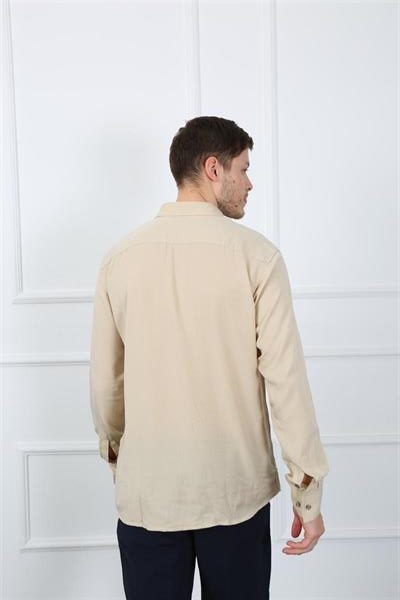 Мужская рубашка slim fit бежевого цвета из 100% хлопка, размеры: S, M, L, XL, XXL