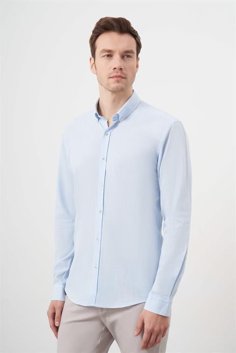 Мужская рубашка Slim Fit с голубой клеткой, 100% хлопок, с воротником на пуговицах, без карманов, длинный рукав