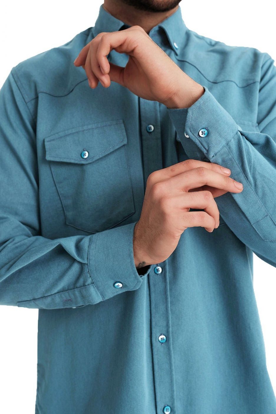 Мужская рубашка Varetta из ткани габардин, модель Lewis, бирюзовая, с двойными карманами, стильная и удобная, легкая в уходе