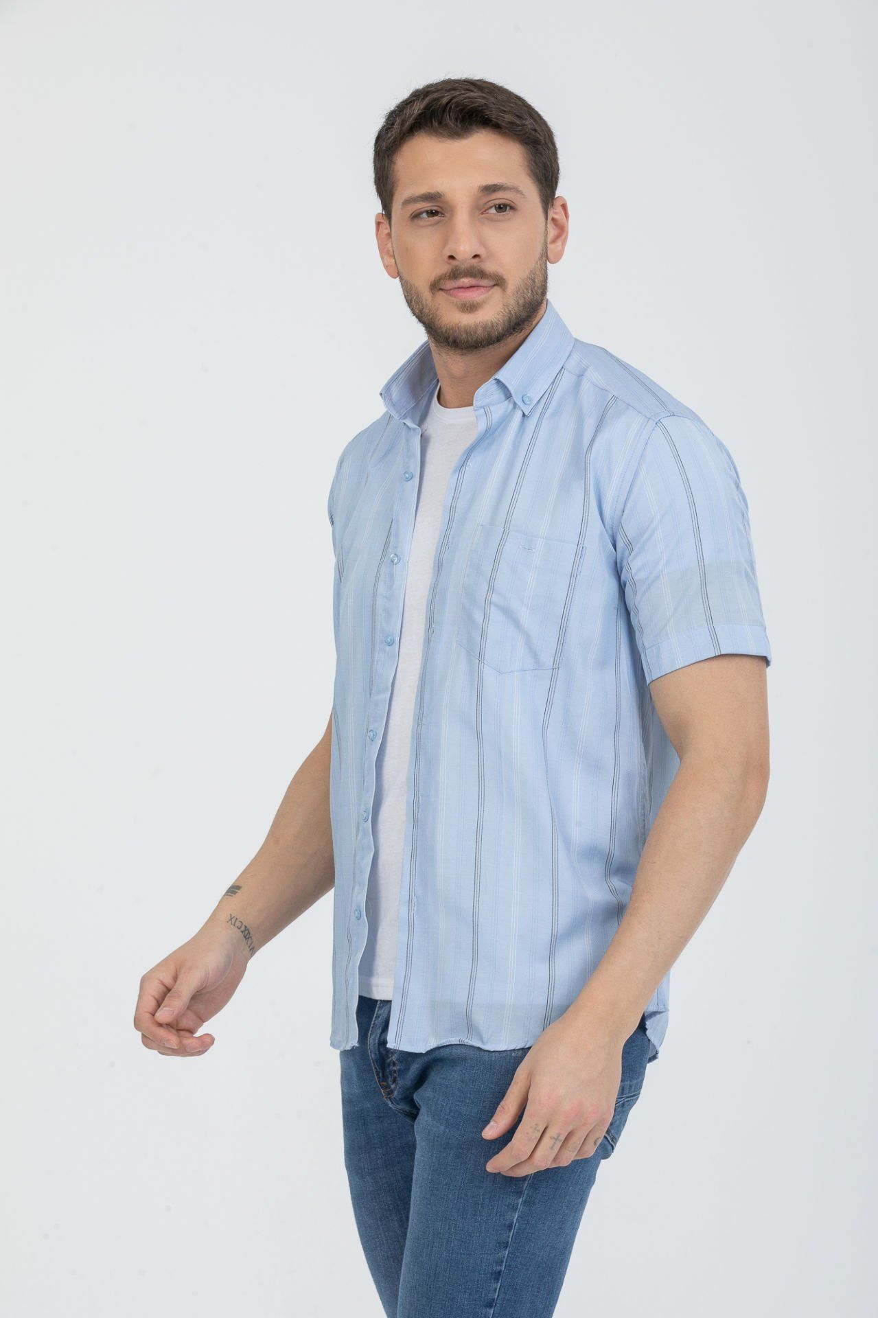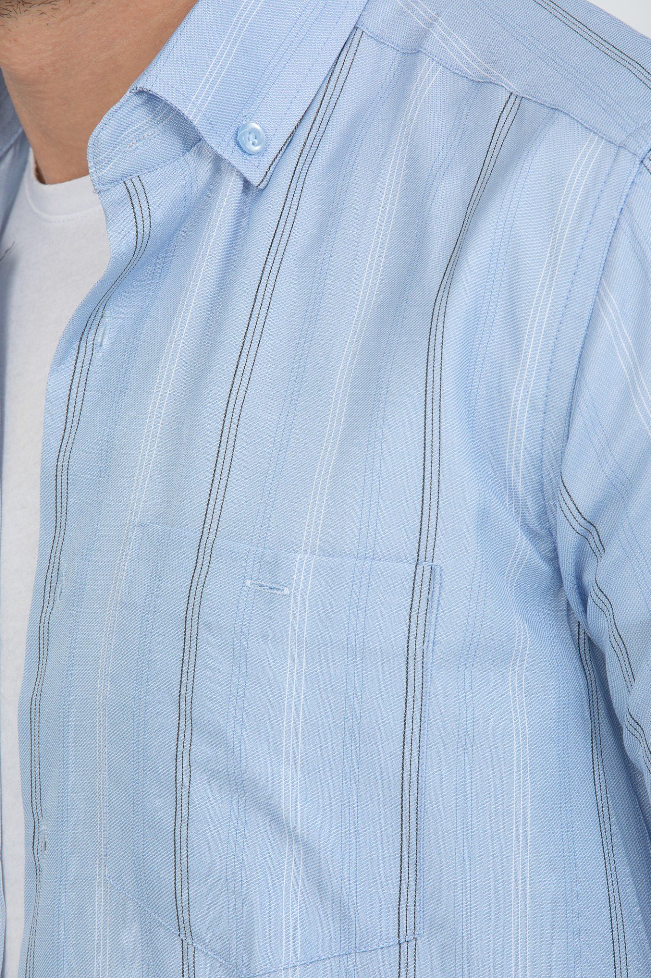 Мужская рубашка Varetta короткий рукав с карманом, светло-голубая, свободного покроя, идеальна для лета