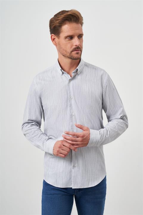Мужская серая рубашка с принтом, пуговицами, slim fit, 100% хлопок, без карманов, длинный рукав, без подкладки, без разрезов