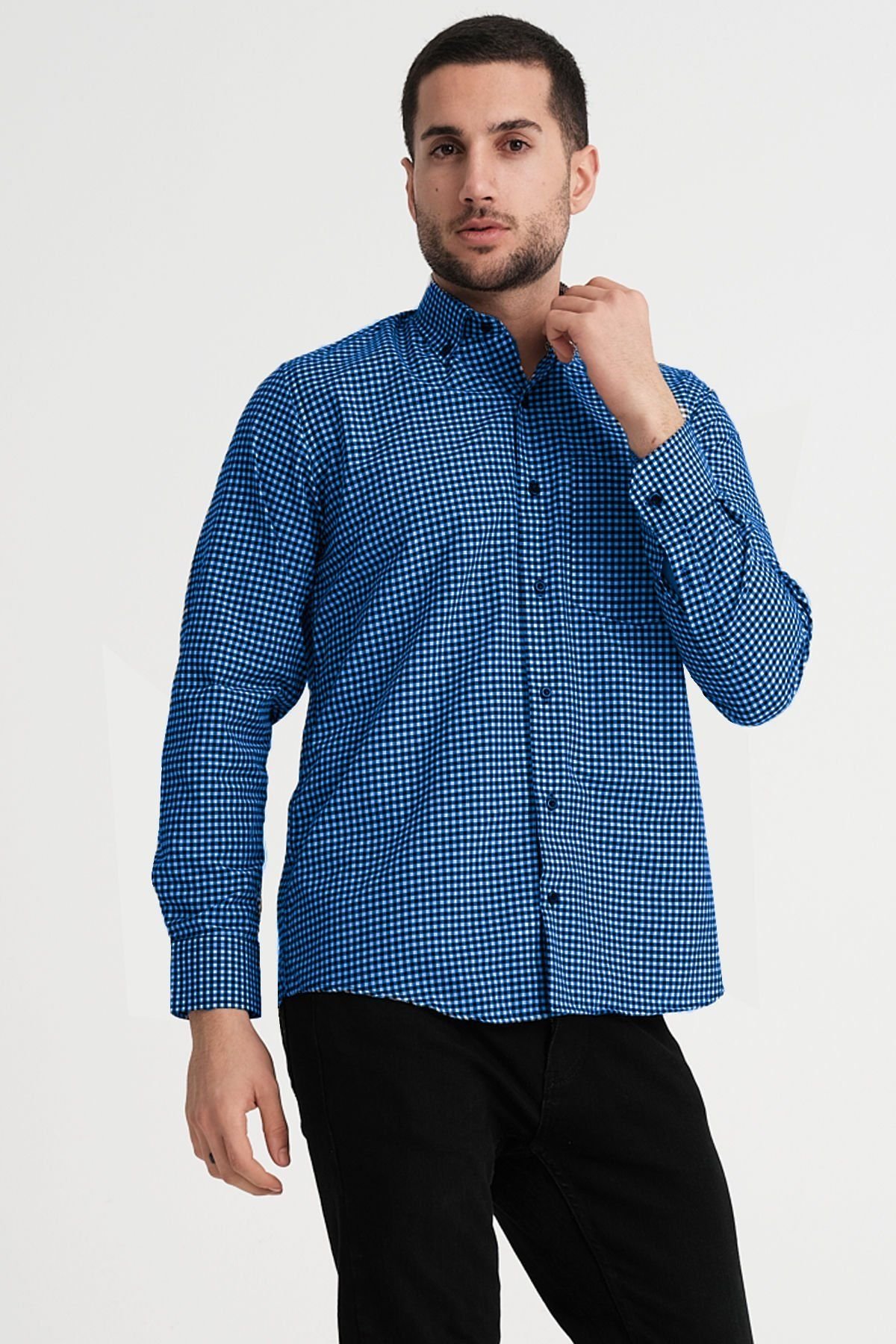 Мужская синяя клетчатая рубашка с длинным рукавом Varetta с карманом, элегантность и качество, удобный крой, изготовлена из турецкого хлопка