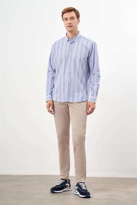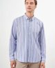 Мужская синяя полосатая рубашка с пуговицами, regular fit, 100% хлопок, длинный рукав, модель L