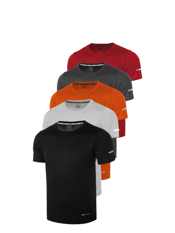 Мужская спортивная футболка DRIFIT-KISAKOL5, техническая, быстросохнущая, 5 штук, размеры XL и M, цвета: черный, серый, оранжевый, дымчатый, красный