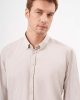 Мужская светло-коричневая рубашка с полосками, кнопками и классическим кроем, регулярная посадка, 57% хлопок, 43% полиэстер