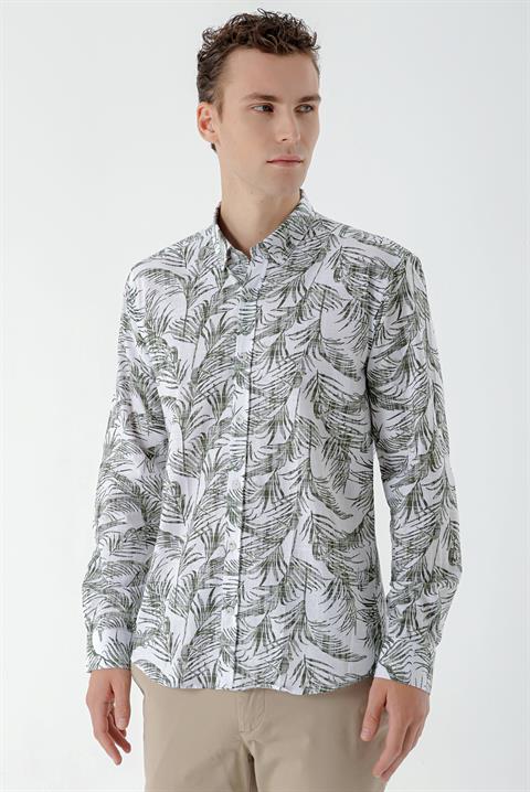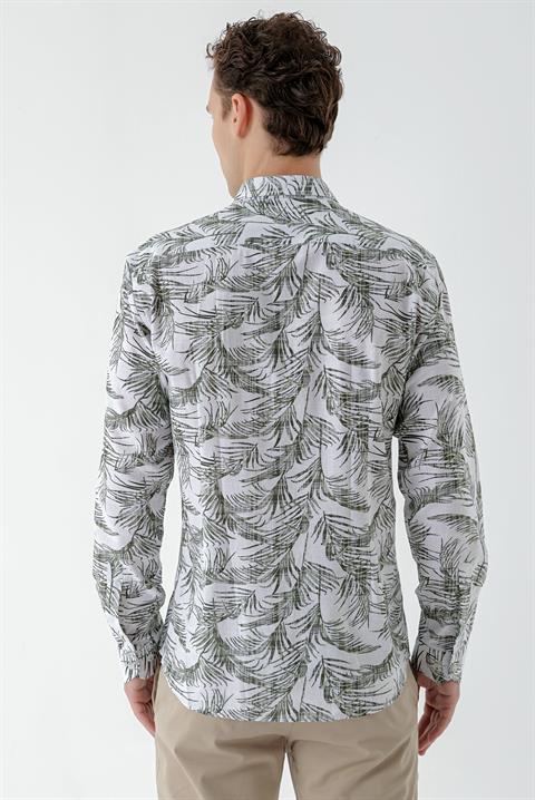 Мужская зелёная хлопковая рубашка с принтом Slim Fit без карманов и подкладки