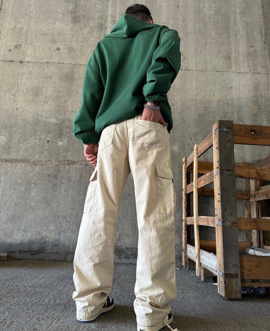 Мужские брюки-караго с карманами и удобным кроем — бежевые