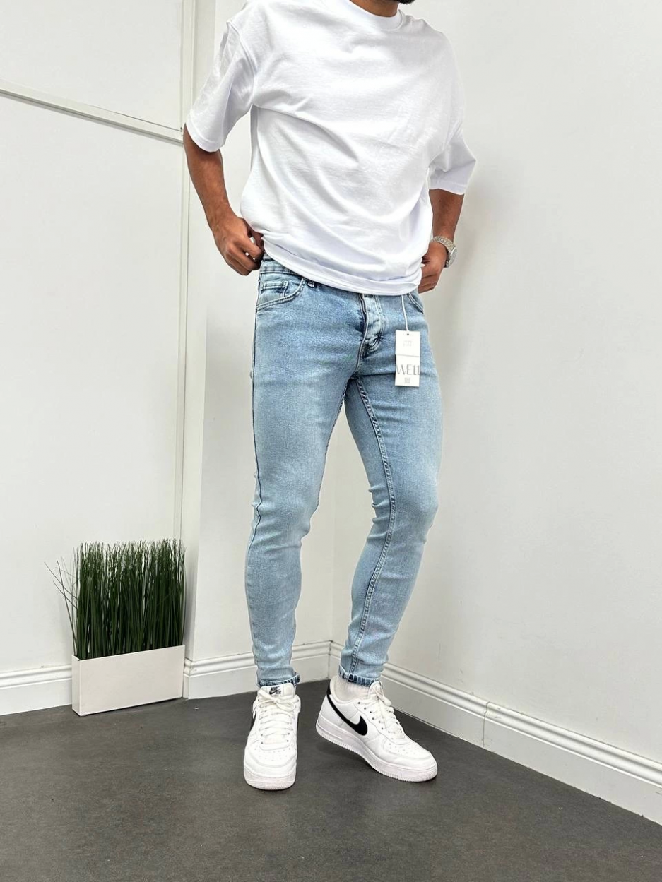 Мужские узкие джинсы skinny fit — светло-голубые, размеры 29-36