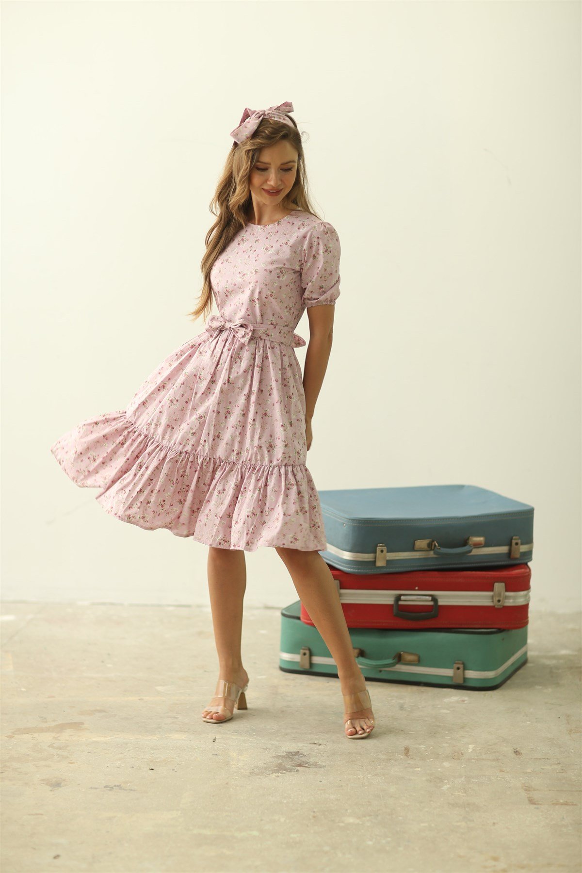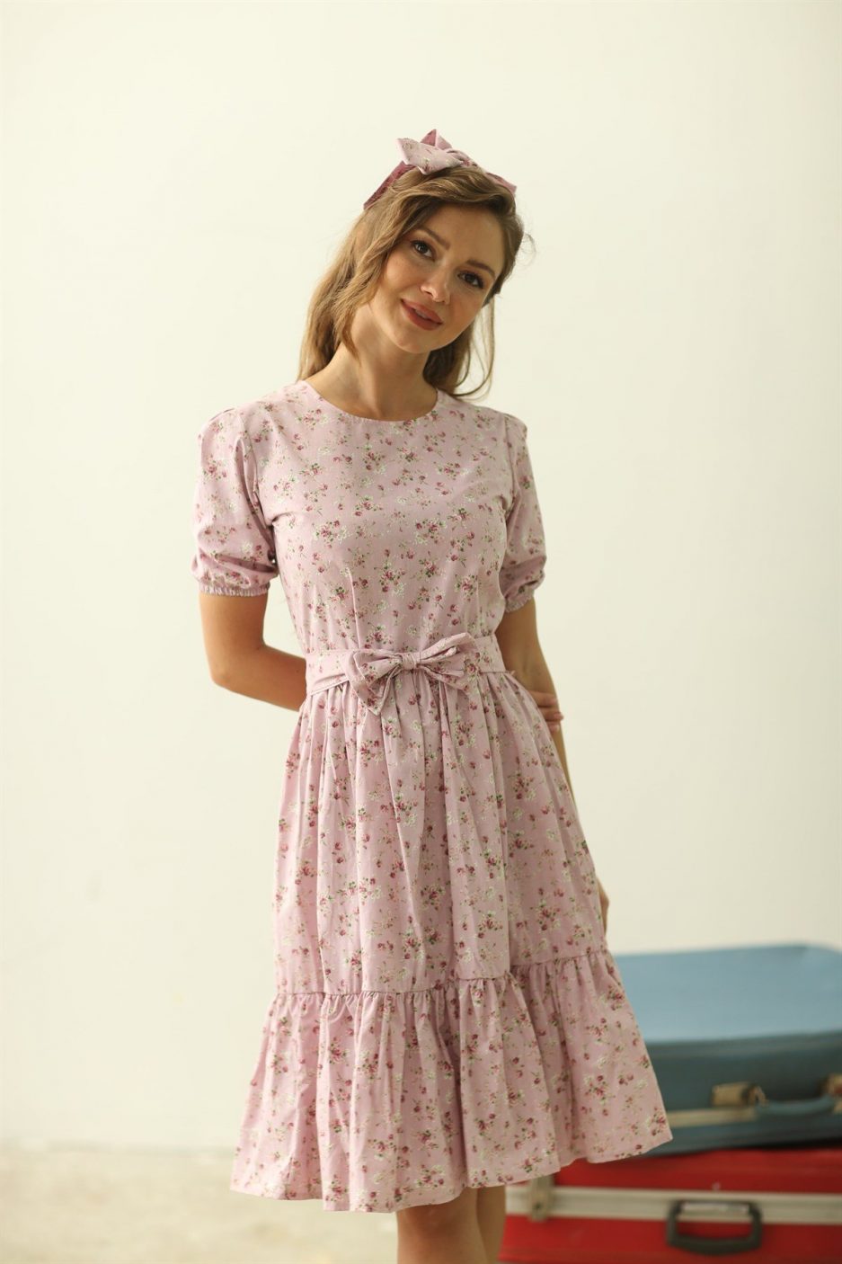 Мягкое розовое платье с мелким цветочным принтом из поплина, размер 36-46, длина 100 см, рекомендуется ручная стирка
