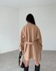 Пальто с поясом, карманами, коричневое, удлиненное, 86 см, мягкое, теплое, не растягивается, модель S