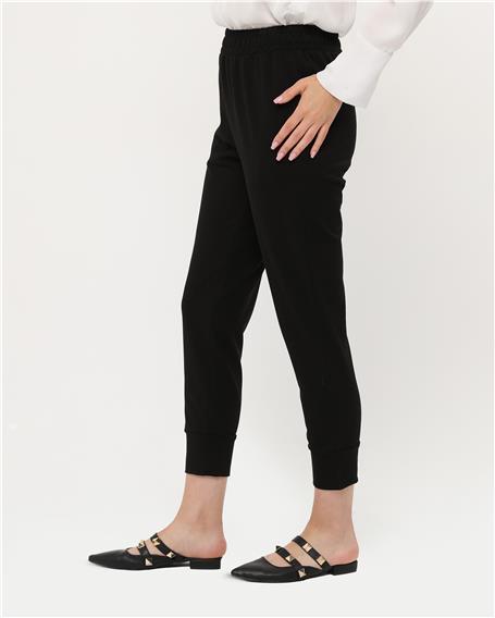 Панталон с манжетами на штанинах и резинкой на поясе — черный, размеры 38-46