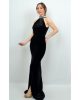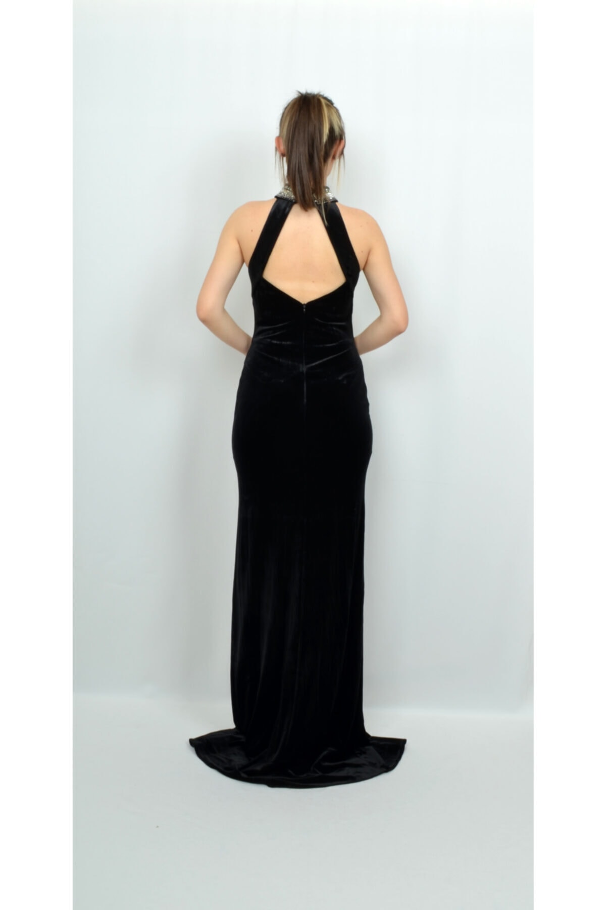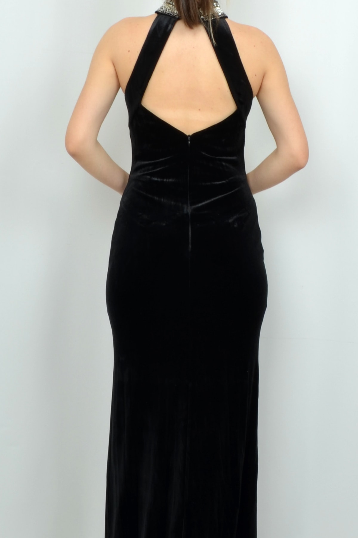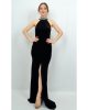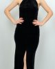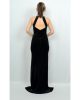 Платье ALİS черное вельветовое с открытой спиной и камнями, размер 36, 38, 40