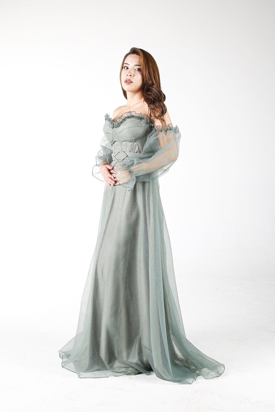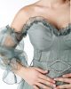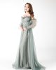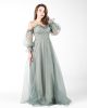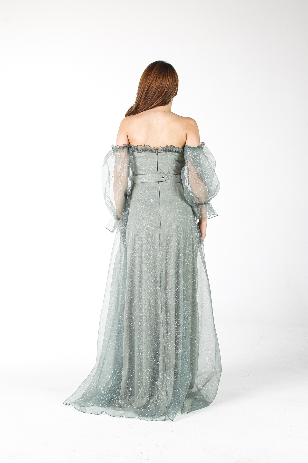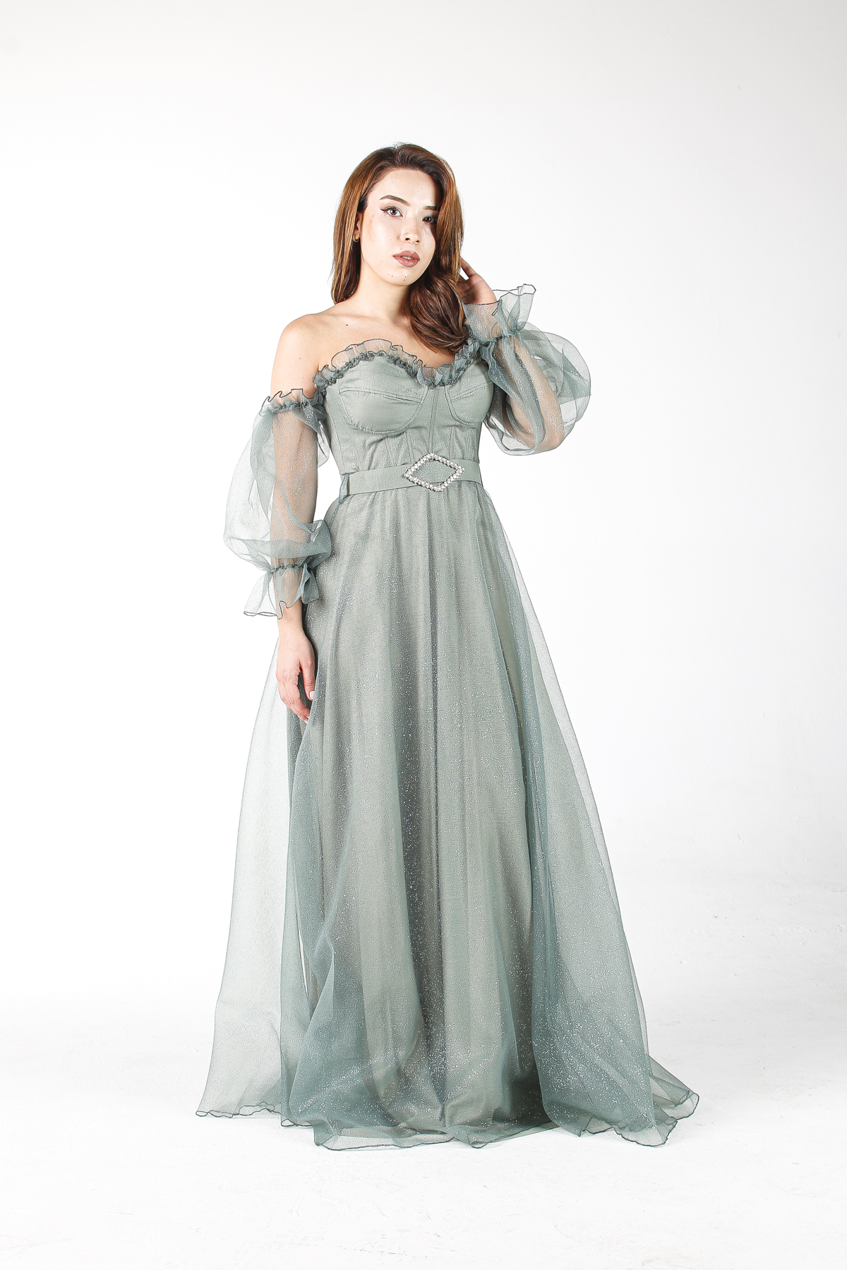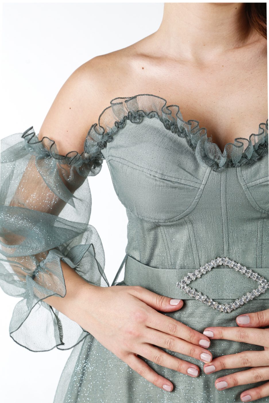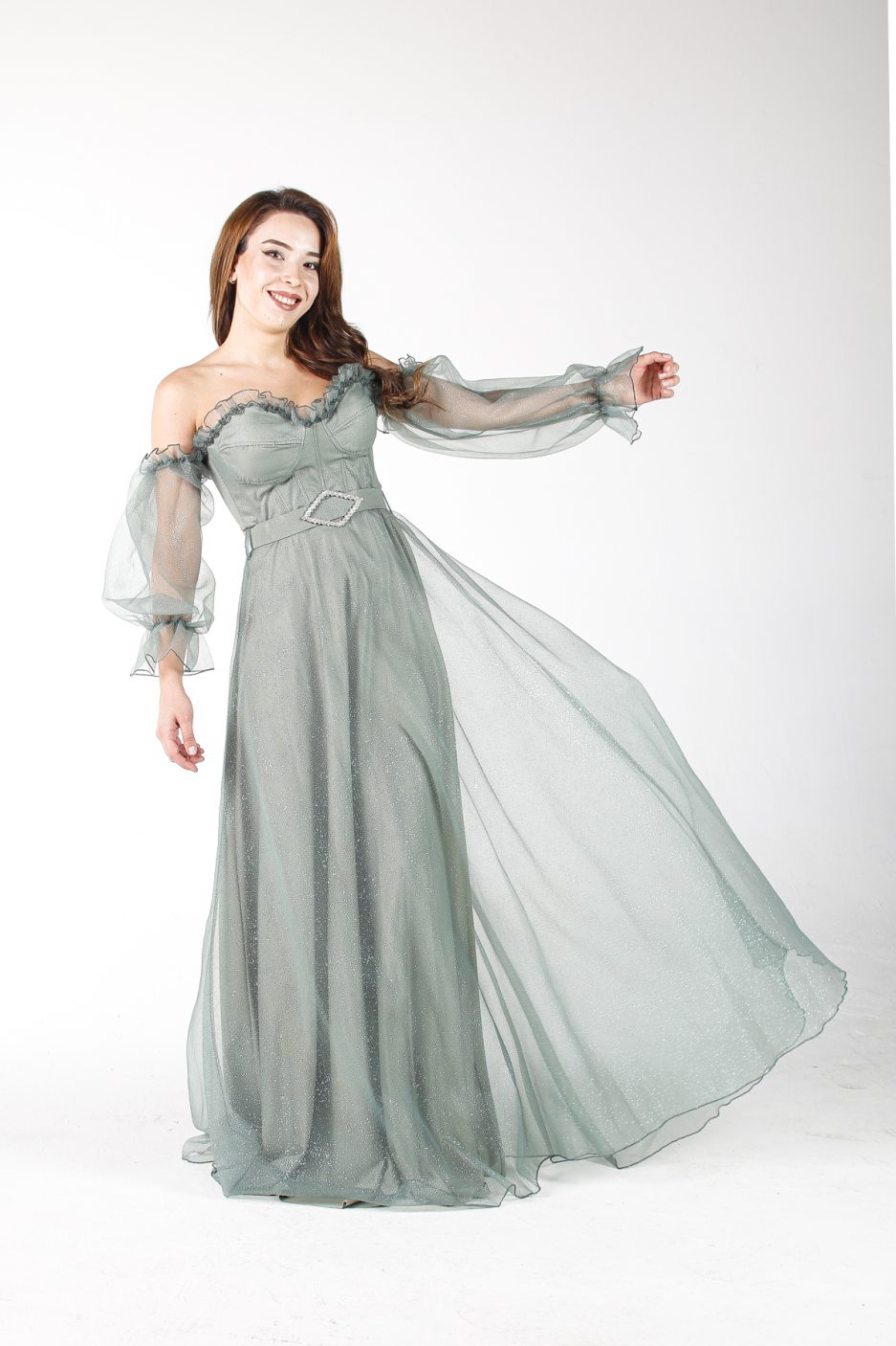 Платье ALİS с каменным поясом, низкими плечами и блестящей отделкой в водном зеленом цвете, размеры 40-46