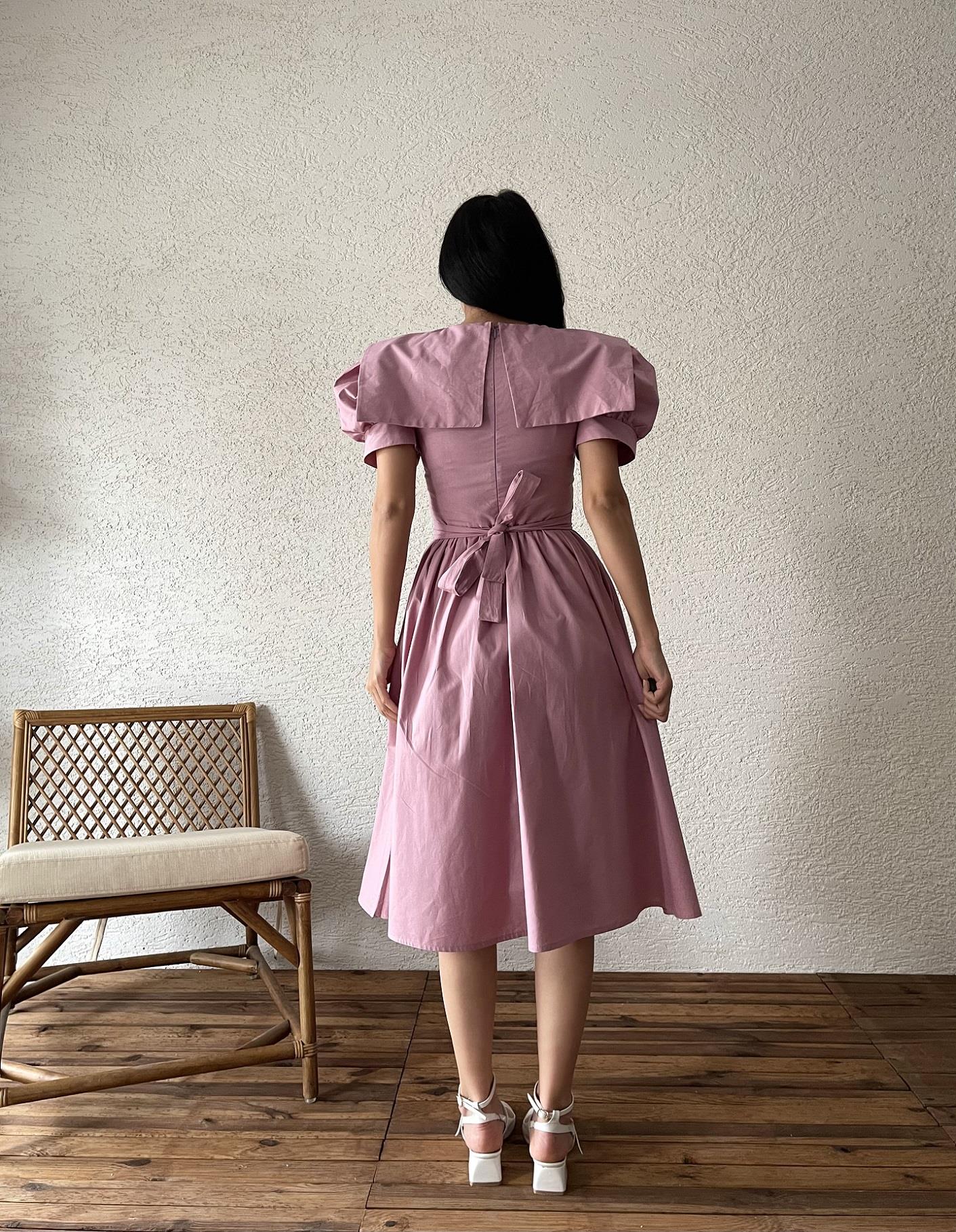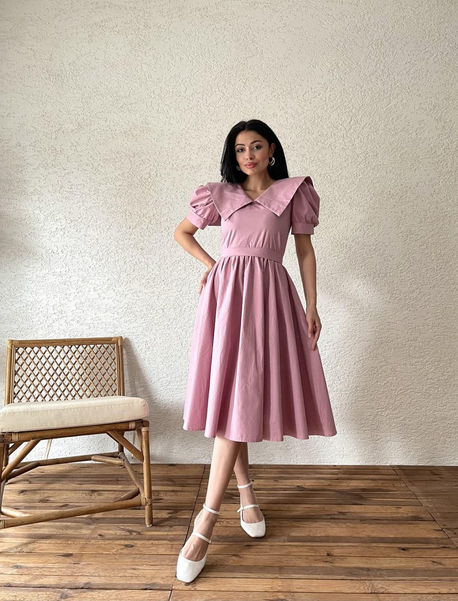 Платье из поплина с большим воротником, 100% хлопок, длина 105-110 см, модель S, доступно в размерах S-3XL