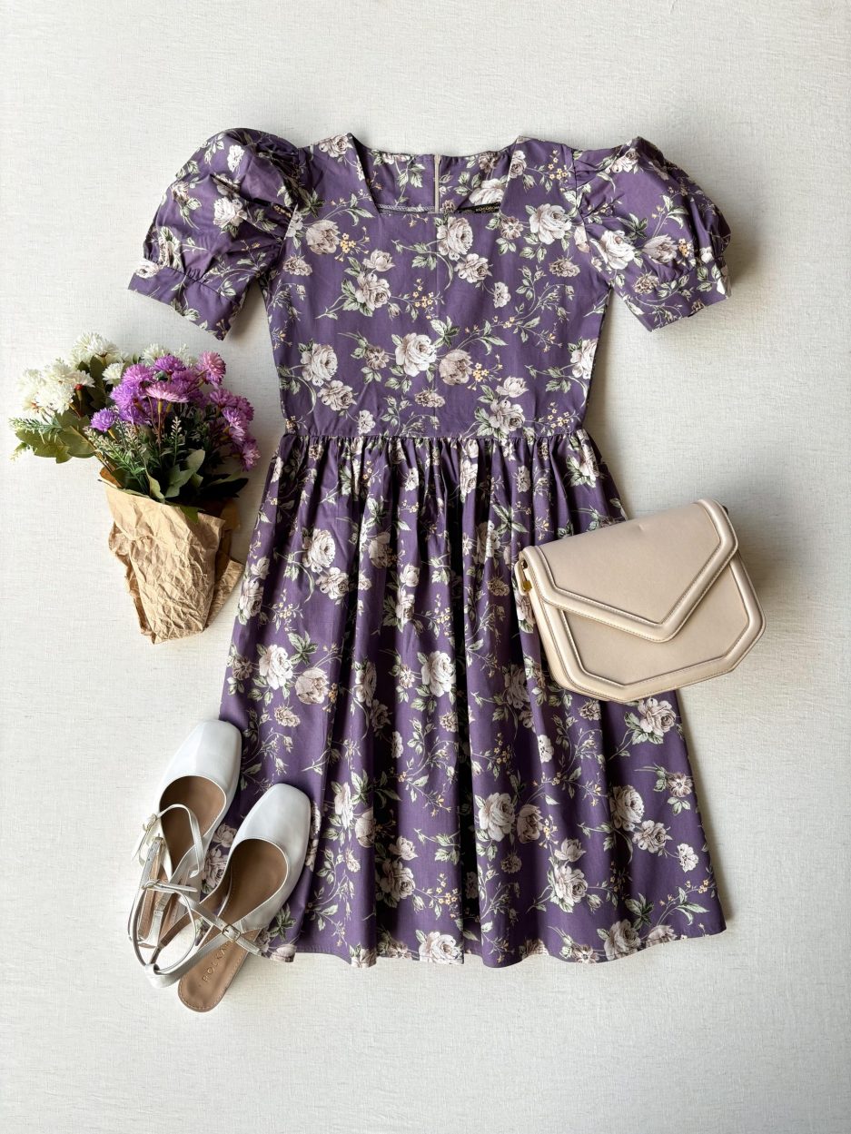 Платье из тонкого хлопкового поплина с фиолетовыми розами, размеры S-3XL, 100% хлопок, рекомендован ручной стирки