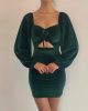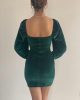 Платье из велюра с деталями, зелёное, длина 80 см, эластичная ткань, не просвечивает, размер S